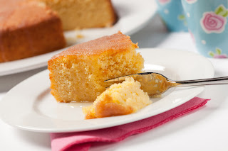 3. Tip into the tin, level the top, then bake for 40-45 mins or until golden and a skewer inserted into the middle of the cake comes out clean. Turn out onto a wire rack after 10 minutes cooling. Mix the granulated sugar and the lemon juice together, insert a skewer several times over the top of the cake, then spoon over the top of the cake letting it trickle down the sides. Let the cake cool completely before slicing.
